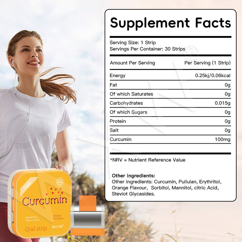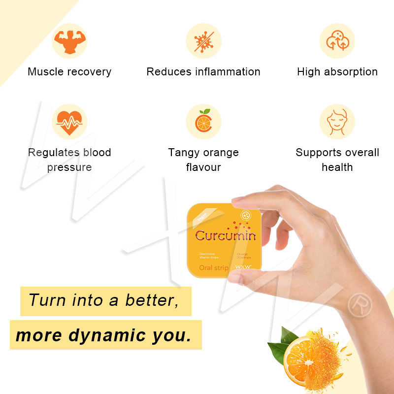Film de curcumine à prix compétitif bandelette de dissolution orale extrait de racine de curcuma complément soluble bandelette de film de gingembre