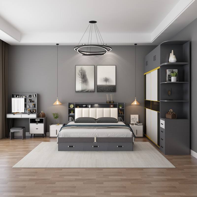 Ensemble de meubles pour appartement hôtel chambre à coucher moderne à prix compétitif cadre de lit en bois rembourré de rangement pour lit King Queen Size personnalisé