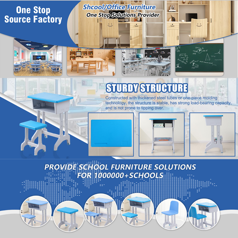 Ensemble table et chaise d'étude en plastique à prix compétitif, écologique et durable, mobilier scolaire exporté de Chine pour le marché mondial