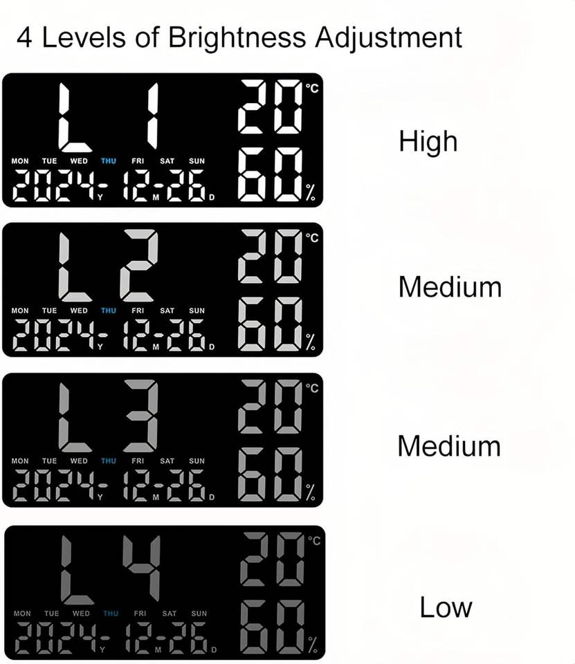 Style antique, Calendriers, Luminova, Silencieux, 3D, Nuit lumière, Affichage 12 heures, Facile à lire, Hygromètre, Thermomètre, Affichage de la température, Lumineux