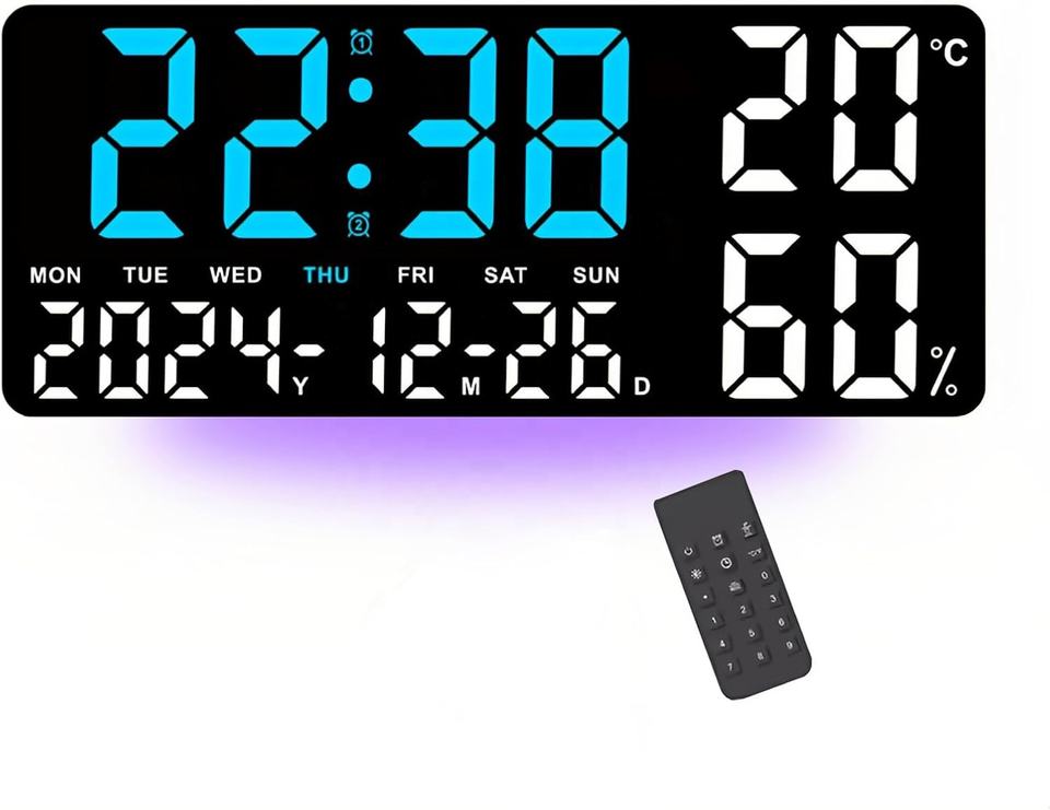 Horloge murale LED rectangulaire silencieuse à grand écran avec télécommande électronique, 4 niveaux de luminosité, prix compétitif, pour usage domestique