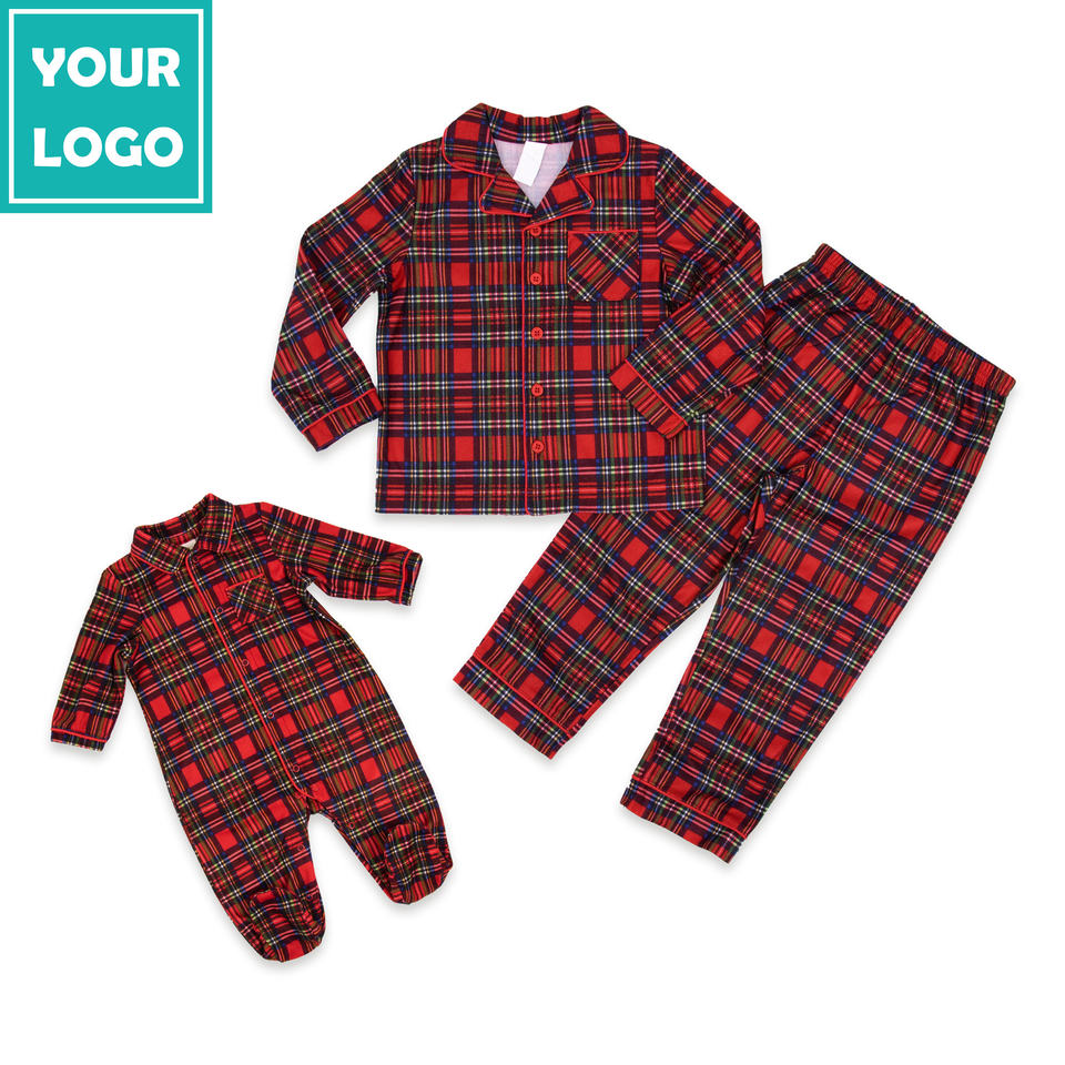 Prix compétitif, pyjamas d'hiver en bambou et élasthanne ultra-doux pour bébé fille, à carreaux, durables et résistants aux flammes