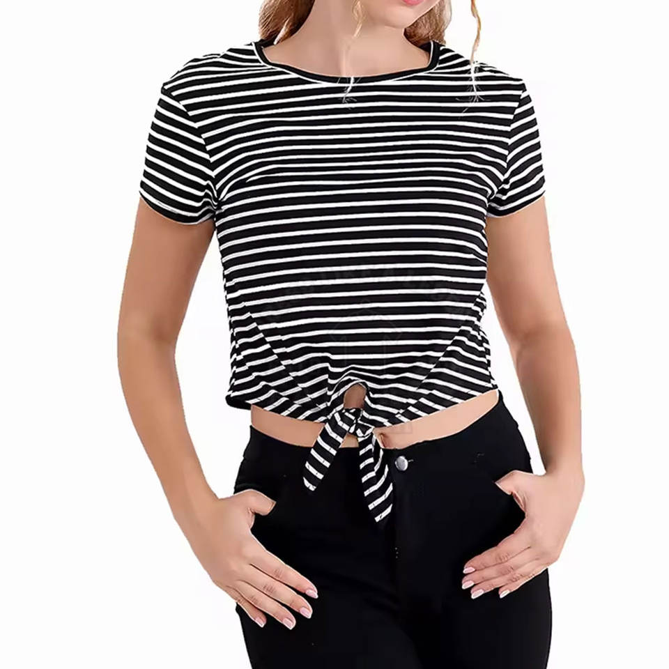 Prix compétitif, haut court pour femme, t-shirt, article à fort volume de vente, manches courtes, décontracté, mode de rue