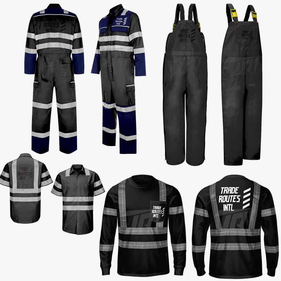 Ensemble de vêtements de travail imperméables en polyester à prix compétitifs, vêtements de sécurité réfléchissants avec logo personnalisé, bavette à boutons, col rond