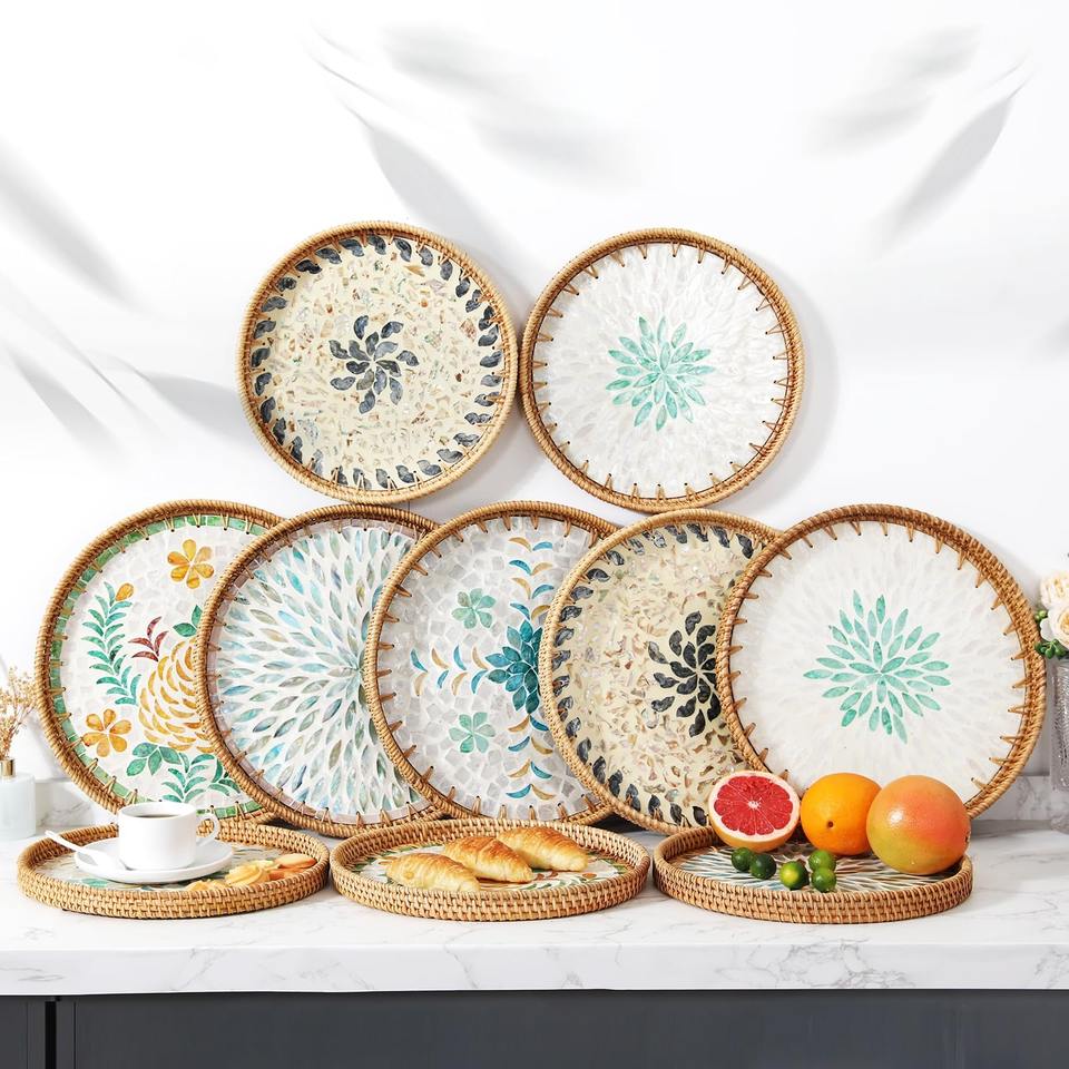Plateaux de service décoratifs en rotin MOP à prix compétitif plateau en nacre tissée directement de l'usine
