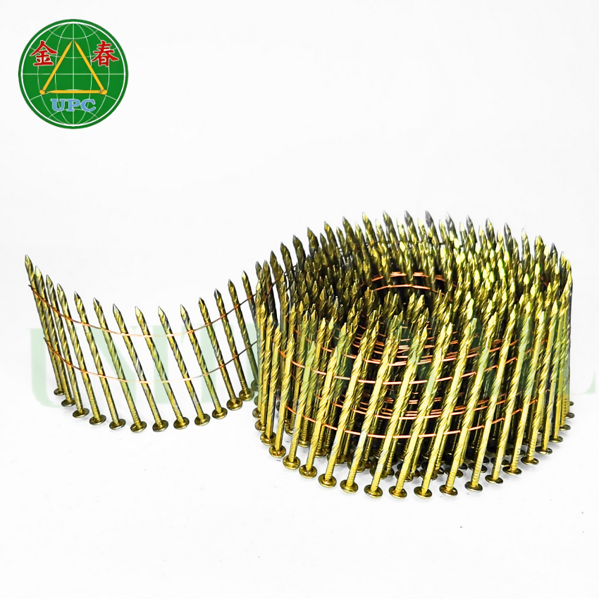 Clous en bobine de 2 po x 0,099 po à prix compétitif, 9000 pièces pour la fabrication de palettes, avec options de tige à vis/lisse/à anneau et tête à carreaux