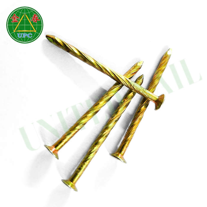 Clous en acier plaqué jaune à prix compétitif fabriqués au Vietnam avec tête à carreaux et type à tige à vis de l'usine du Vietnam