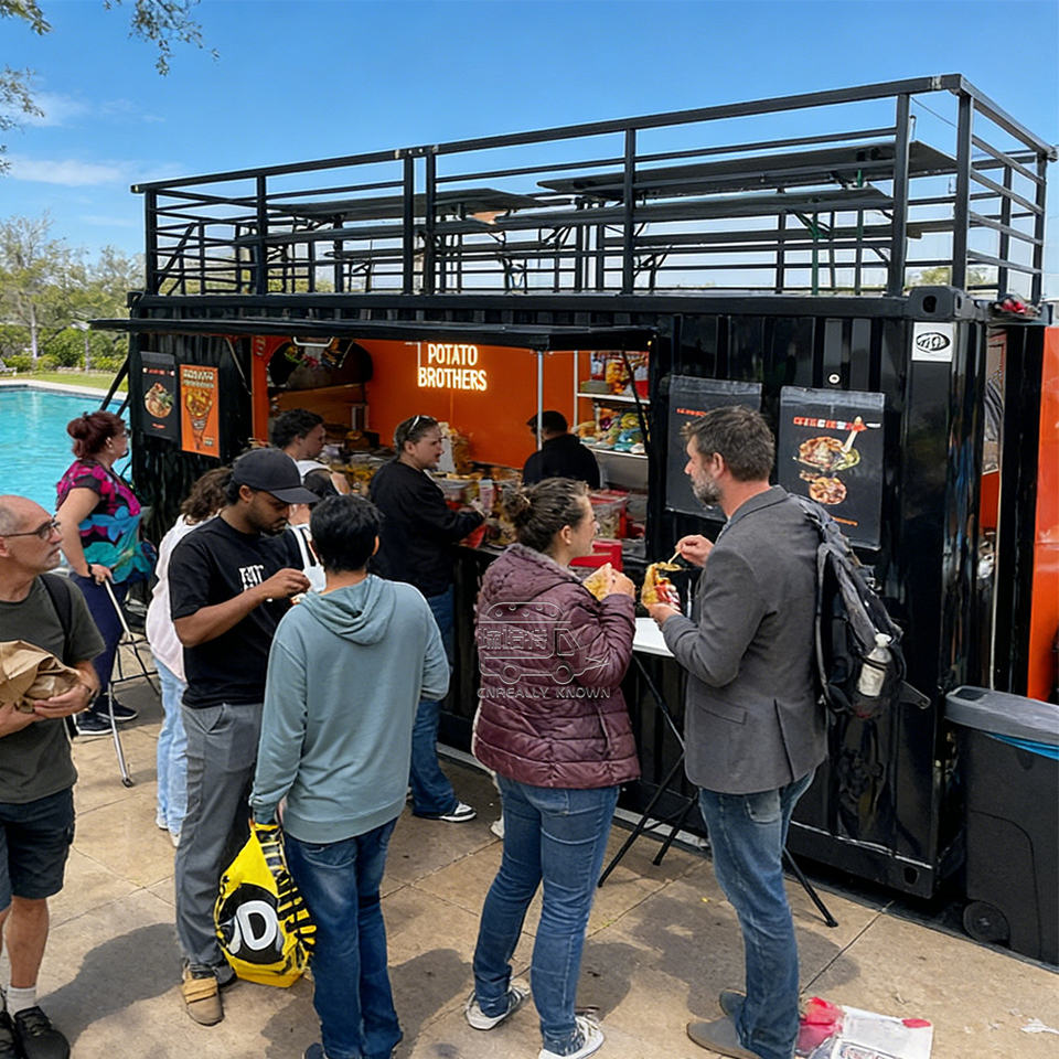 Solution complète de conteneur transformé en café, bar, restaurant, cuisine de rue, remorque ou chariot