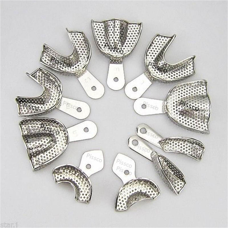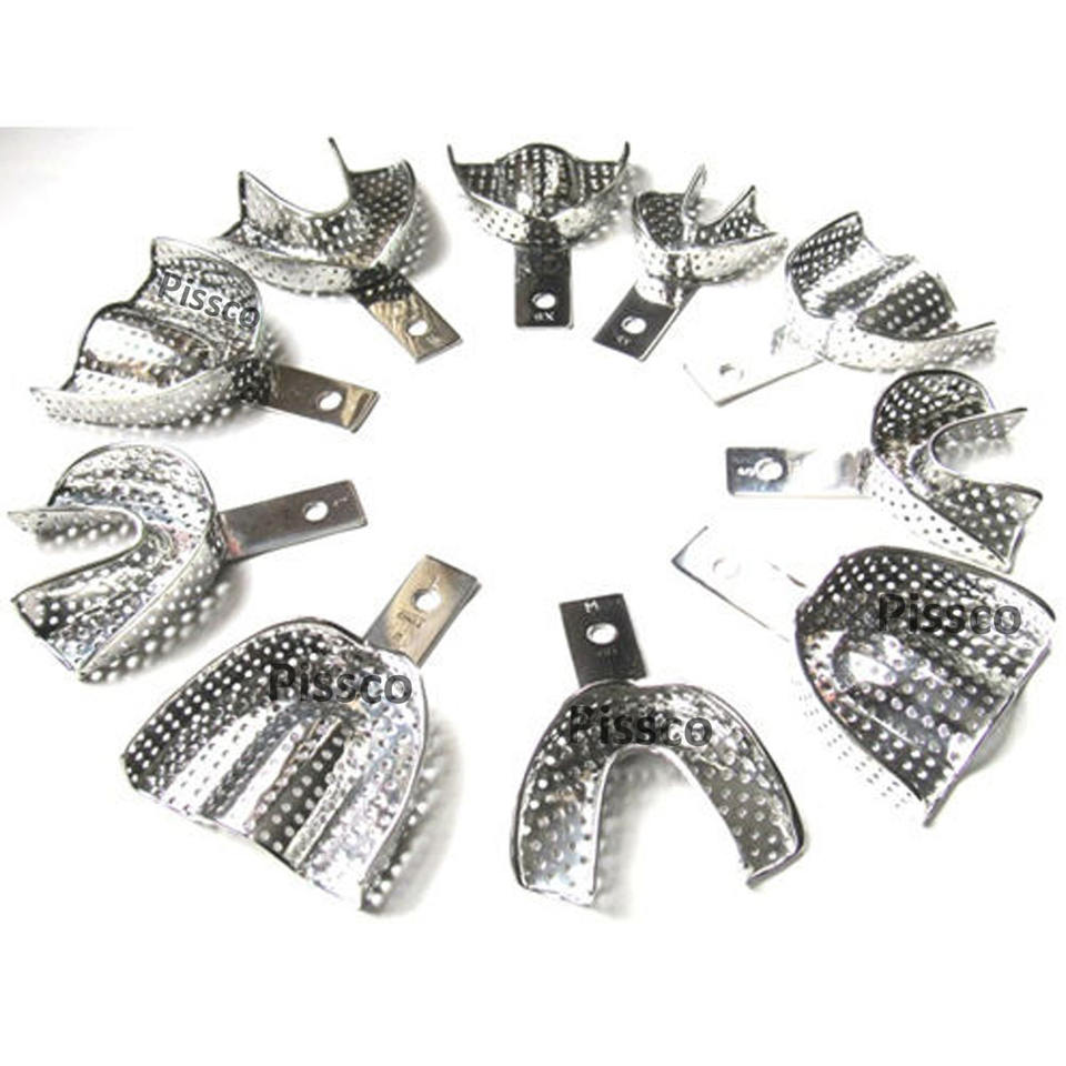 Plateau d'empreinte pour prothèse complète en acier inoxydable, réutilisable, amovible, lot de 10 pièces, fabriqué par Pissco