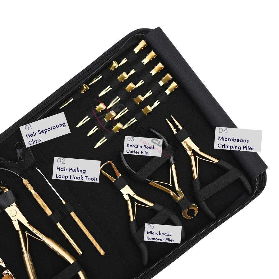 Nom du produit:Kit complet de styliste pour extensions de cheveux, outil de sertissage de micro-perles