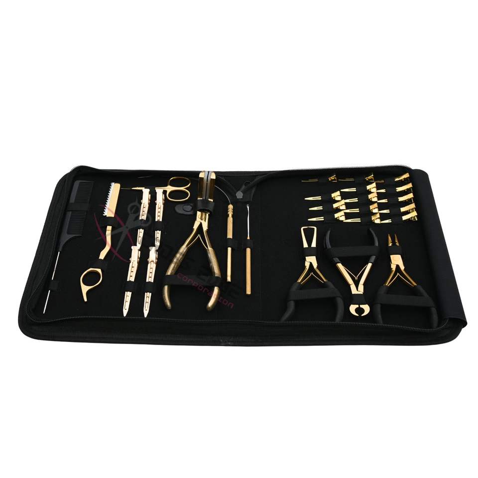 Kit Complet de Coiffure Professionnel pour Extensions de Cheveux : Outil de Sertissage à Micro-Anneaux, Pince à Bandes Adhésives, Coupe-Bandes, Crochet à Boucles, Mini Ciseaux, Peigne à Queue