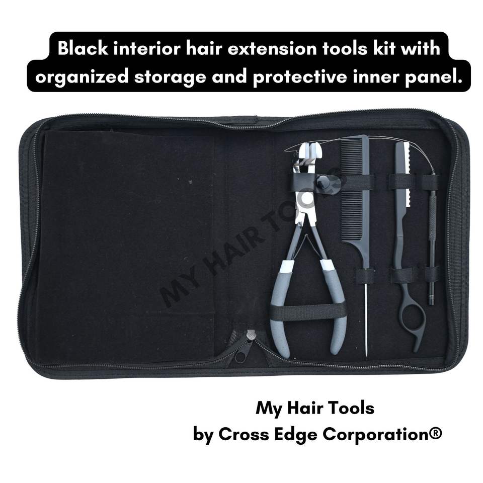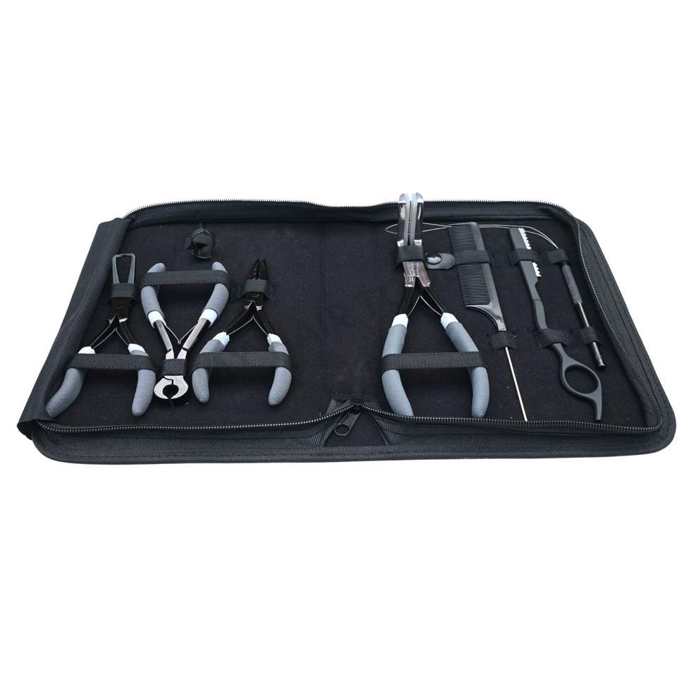 Kit d'outils pour extensions capillaires noir avec pince à retirer les micro-billes
