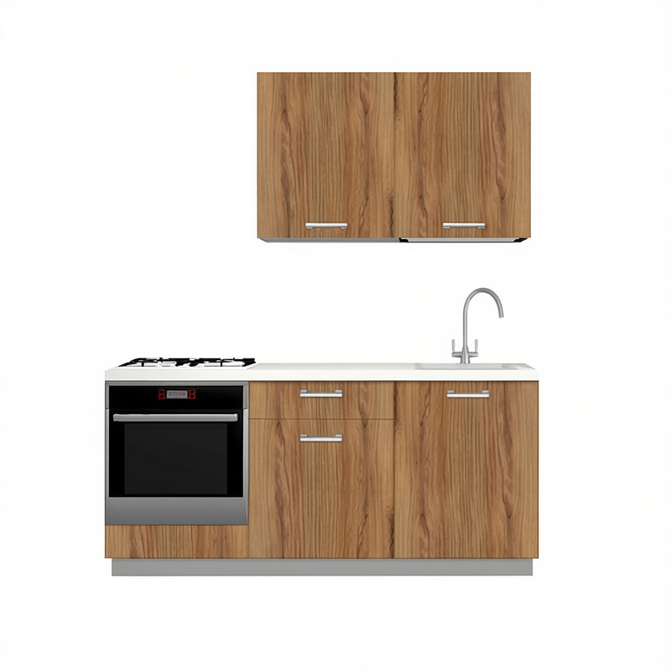 Cuisine complète en chêne miel 180 cm avec four et évier, design moderne