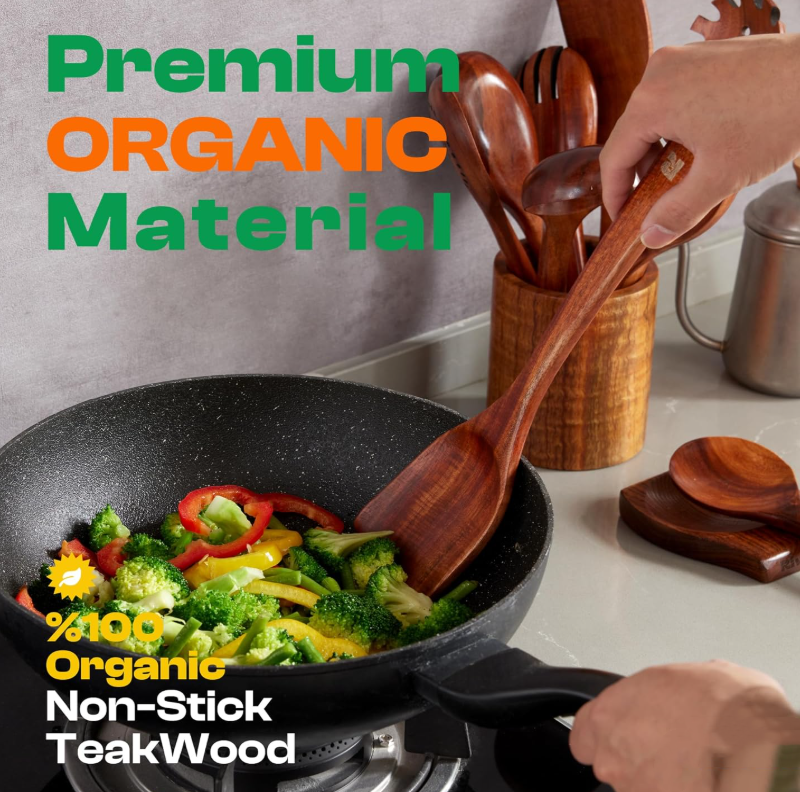 Ensemble complet d'ustensiles de cuisine 9 pièces, brun foncé, essentiels de cuisine, ensemble d'ustensiles de cuisine en bois