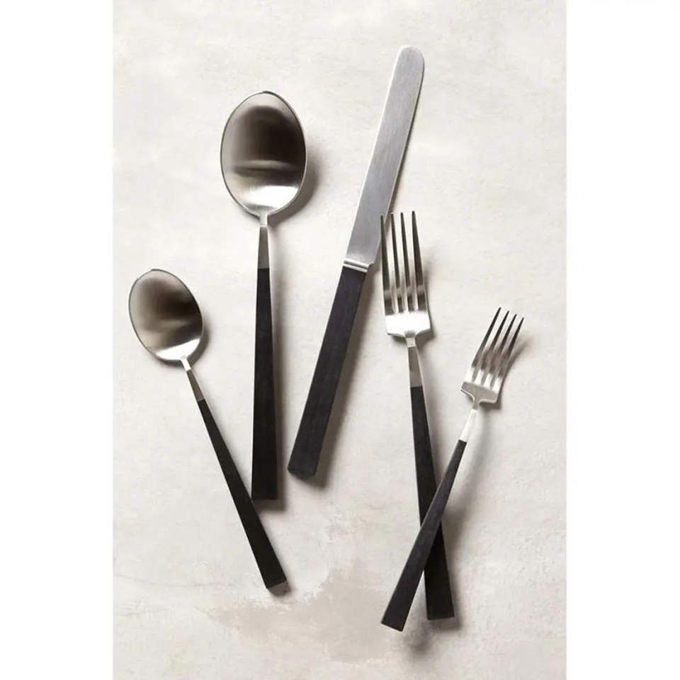 Ensemble complet de couverts en métal comprenant des cuillères à dîner, des fourchettes et des couteaux, adapté aux repas en famille