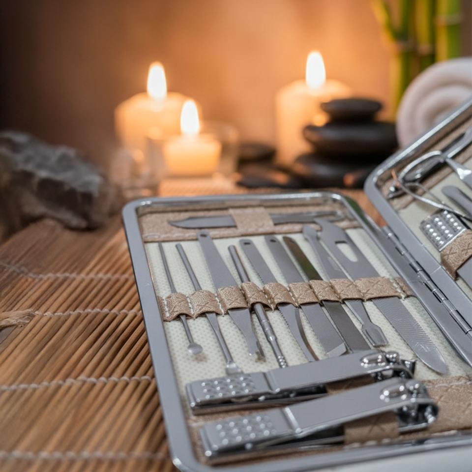 Ensemble de manucure portable complet en acier inoxydable avec des outils de soin des ongles pratiques et élégants