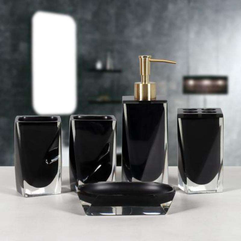 Ensemble complet de salle de bain en résine pour les couples avec double porte-brosse à dents et pompe à savon à très bon prix