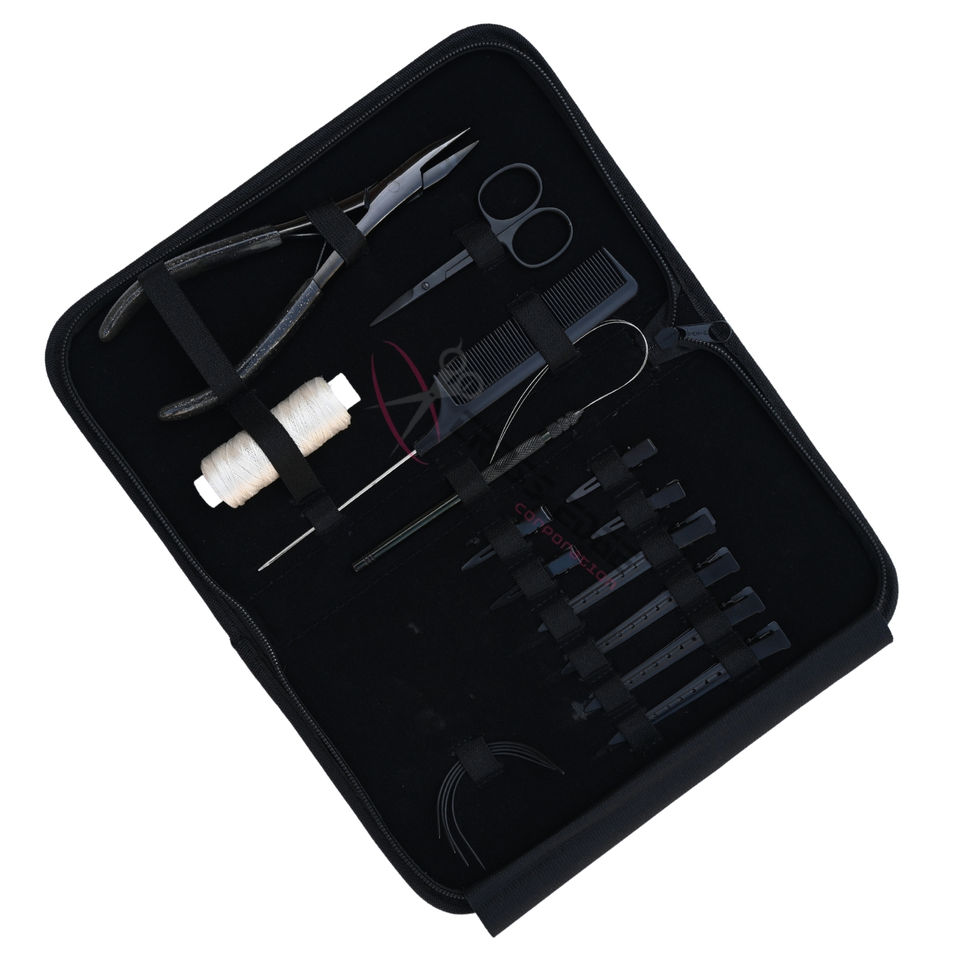 Kit Complet d'Outils pour Extensions Capillaires de Salon : Pince à Sertir, Enfileur de Boucles, Fils de Couture pour Perruques, Peigne à Queue, Aiguilles, Pinces de Coiffure
