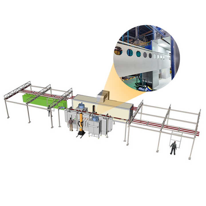 Four à revêtement en poudre:Four de revêtement en poudre avec système de rails aériens