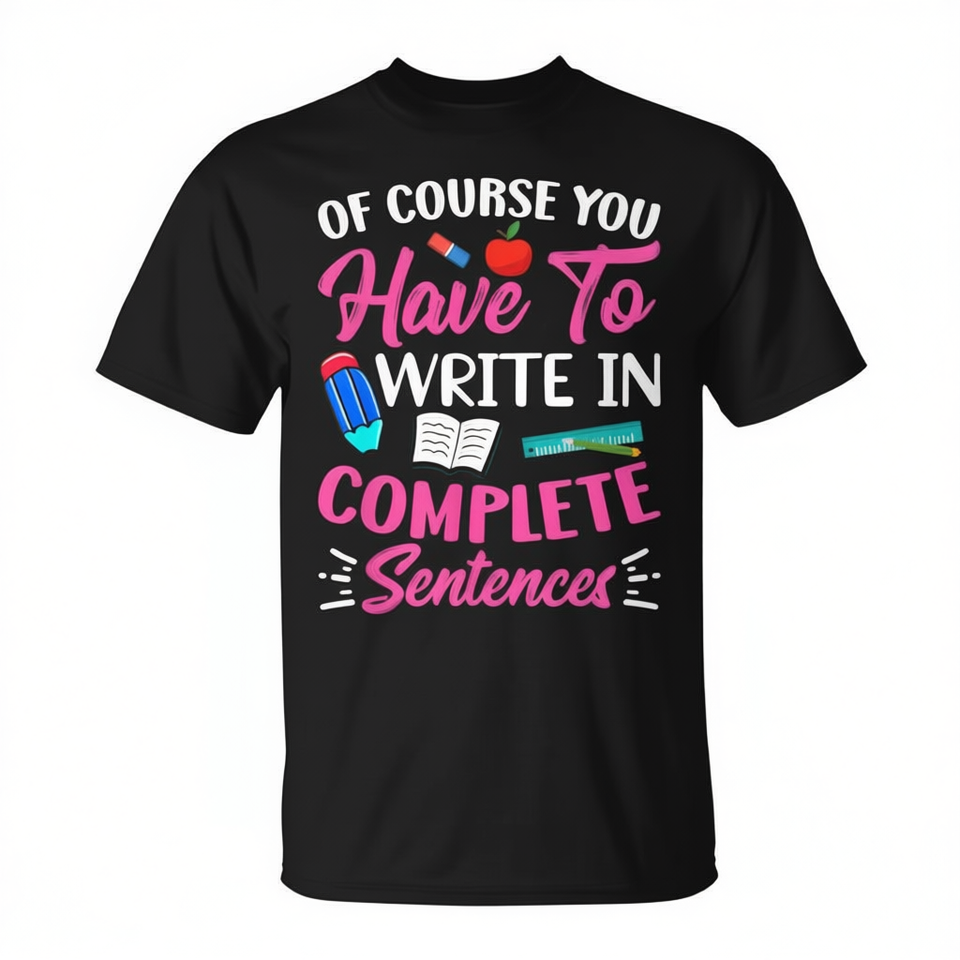 T-shirt graphique pédagogique « Sentences complètes » pour étudiants – Vêtement promotionnel essentiel pour les enseignants
