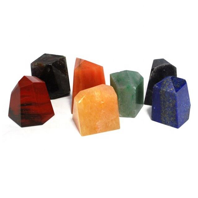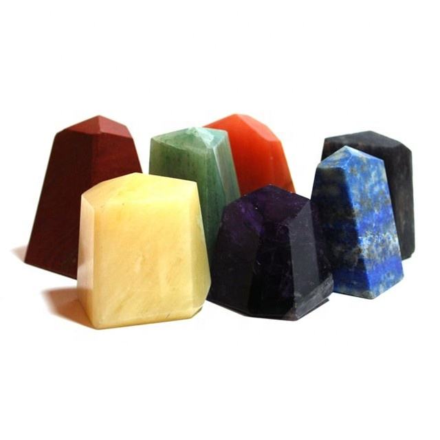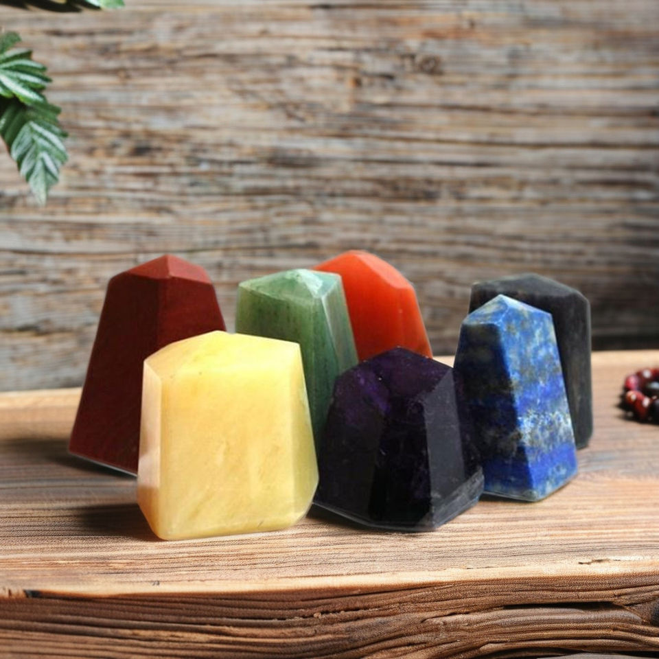 Ensemble complet de cristaux pyramidaux naturels à sept chakras Finition polie Guérison Pierres Vibration d'amour Pièces de décoration spirituelle