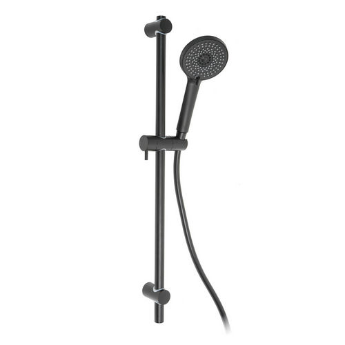 Rail de douche coulissant complet noir mat, longueur 17 cm, hauteur 75,8 cm, avec douchette à main pour salle de bain