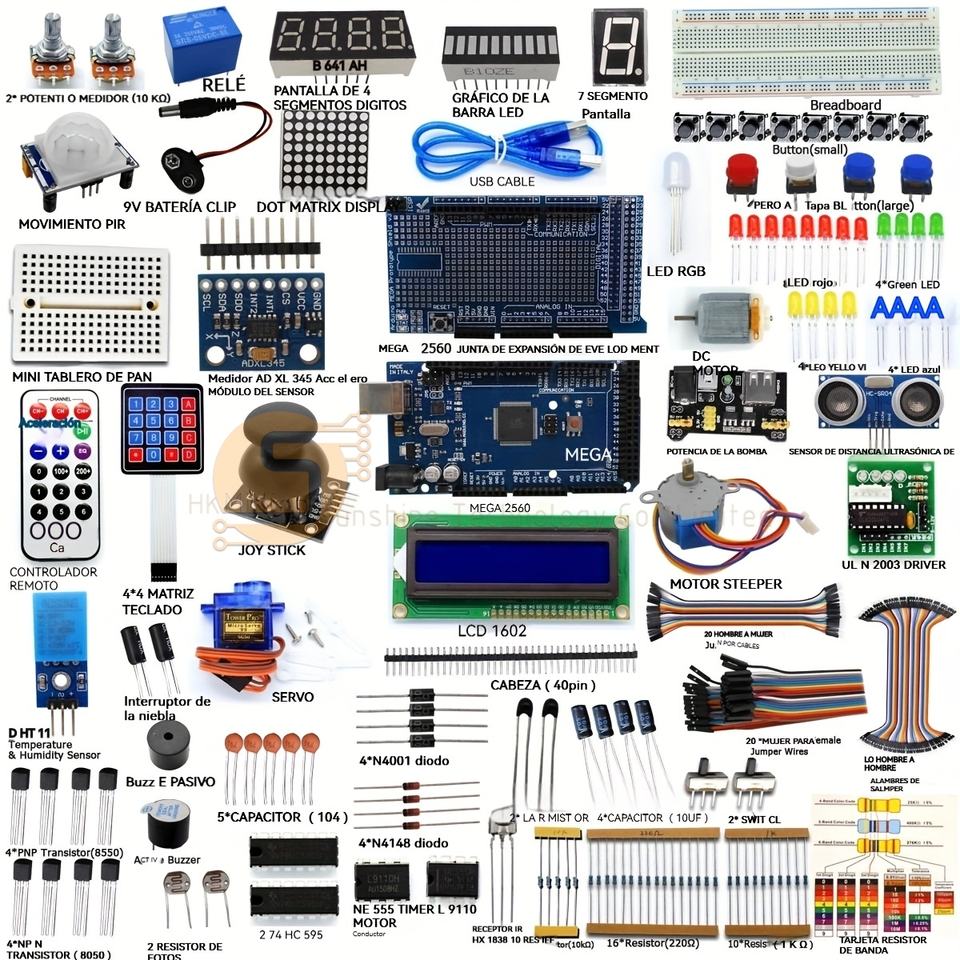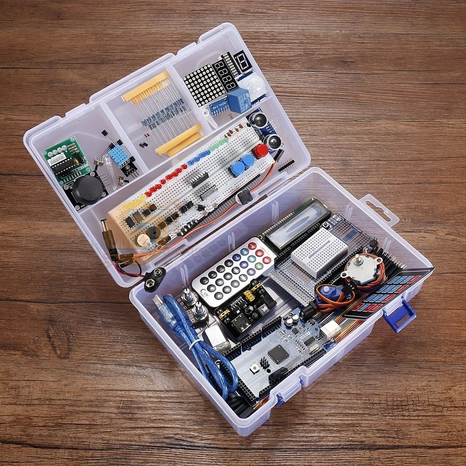 Kit de Démarrage Complet pour Arduino MEGA 2560 avec Écran LCD1602, Moteur Servo, Capteurs, Platine d'Expérimentation, Fils, Résistances et LEDs pour Débutants