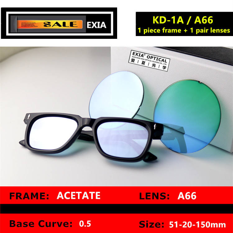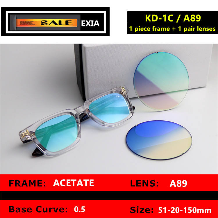 Lunettes de soleil complètes KD1 Monture en acétate avec verres EXIA Flash Mirror Flat Base Curve 0