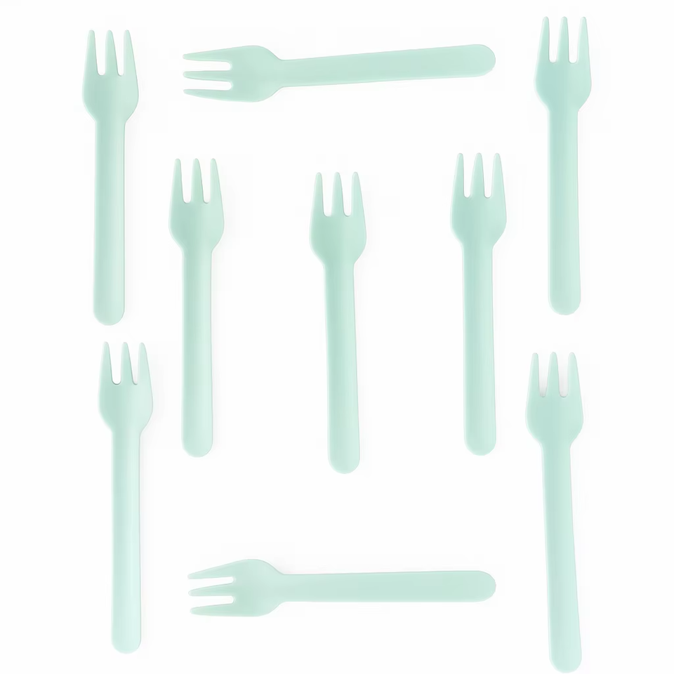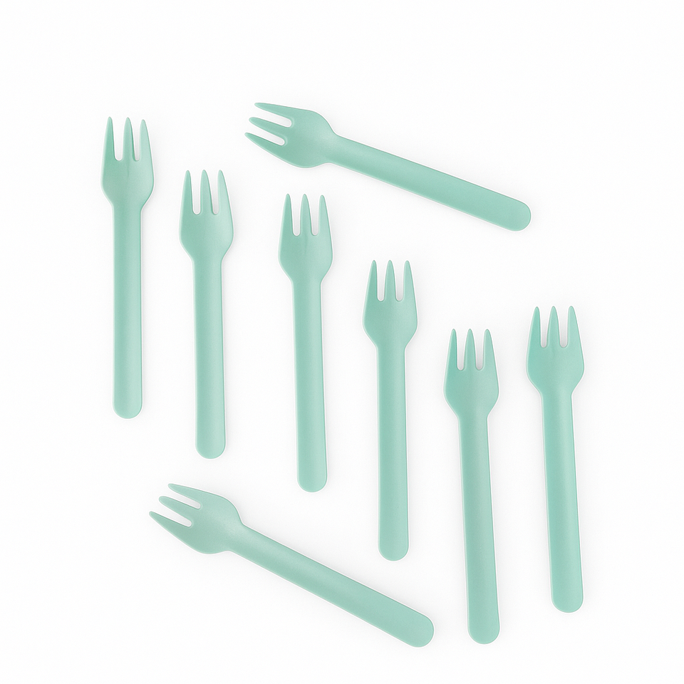 Fourchette en papier jetable biodégradable compostable 155 mm verte pour restaurant, couverts à emporter avec logo et emballage personnalisés