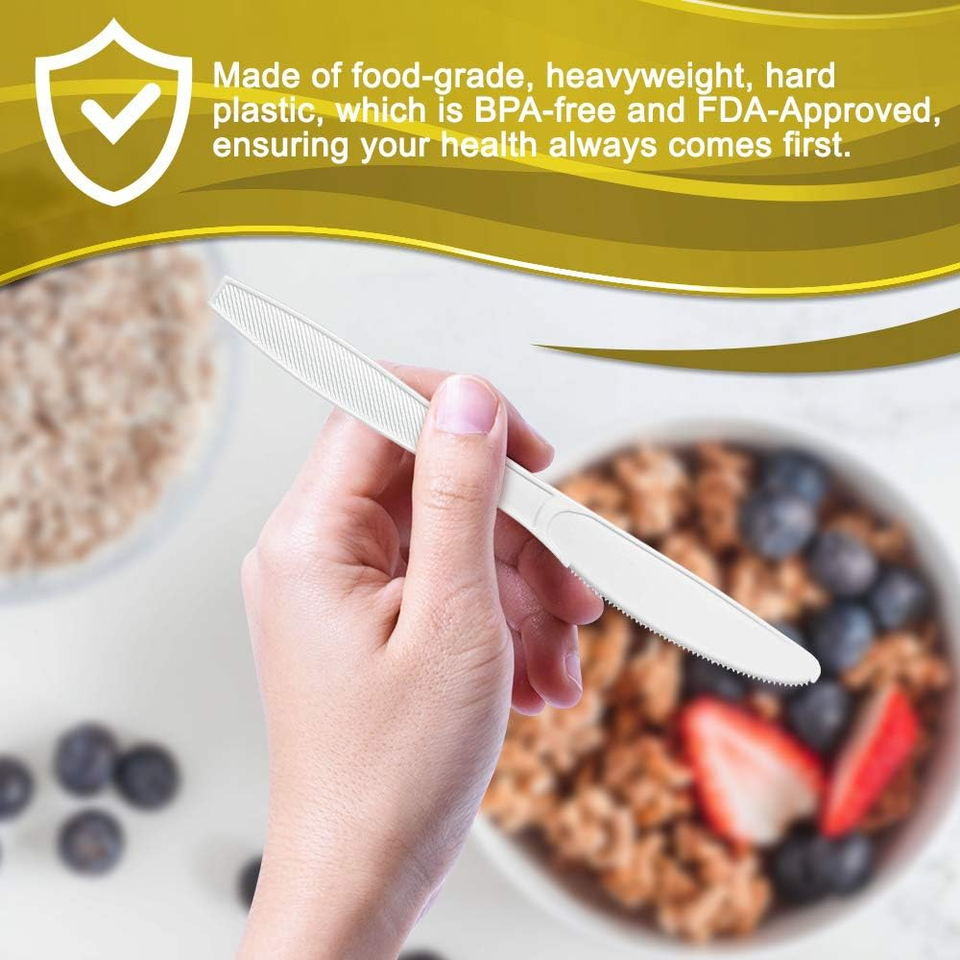 Ensemble de couverts jetables compostables, biodégradables et écologiques (fourchettes, couteaux) en PLA, sans BPA, recyclables, pour les fêtes