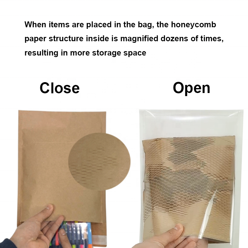 Sac d'emballage en papier compostable, enveloppe rembourrée en papier nid d'abeille pour cosmétiques, emballage en papier