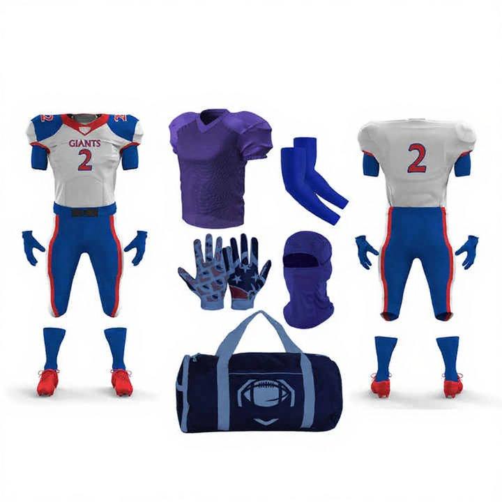 Ensemble complet d'offres de football américain Chemise, gants, sacs de sport et plus encore, rembourrés, personnalisés et de haute qualité