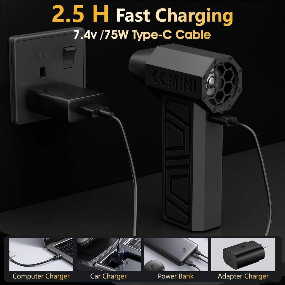 Dépoussiéreur à air comprimé 105,000 tr/min Super Power électrique, mini souffleur réglable à 3 vitesses avec charge rapide, souffleur de poussière