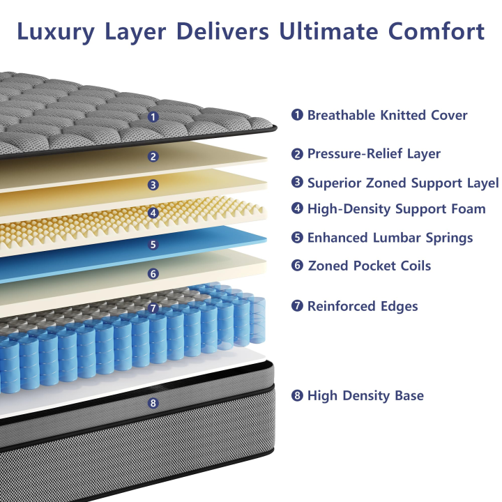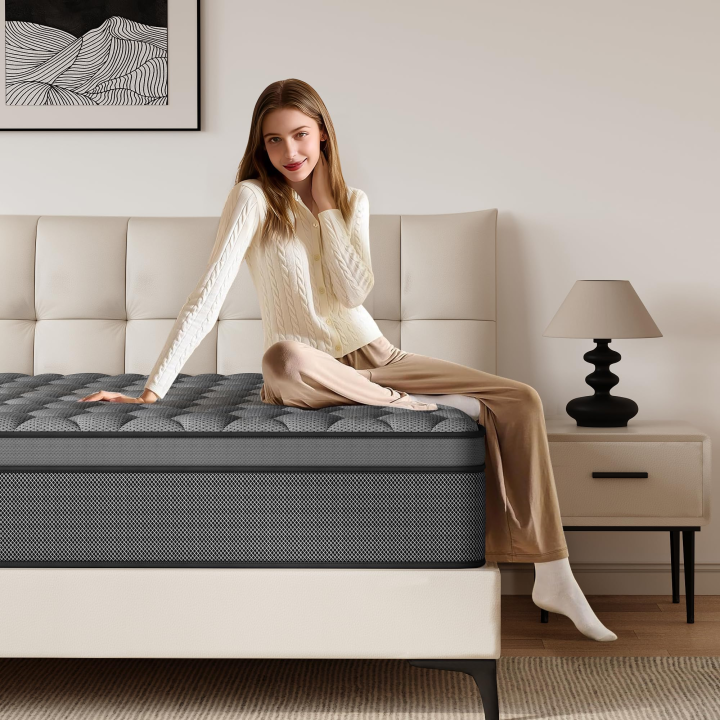 Matelas Compressé en Boîte Hybride Écologique en Mousse à Mémoire de Forme 30cm d'Épaisseur Housse en Coton Respirante Rafraîchissante pour Chambre et Hôtel