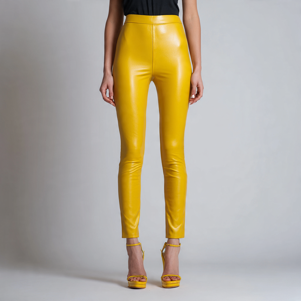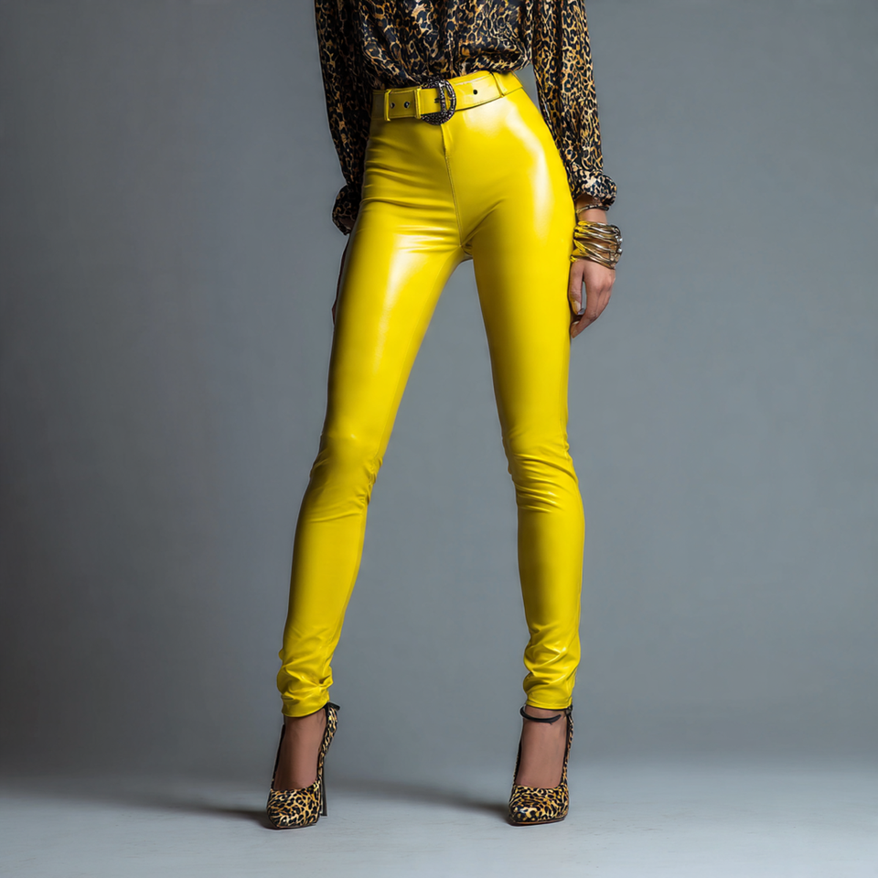 Compression PU cuir Compression Legging femmes survêtement jaune brillant cuir Leggings dames