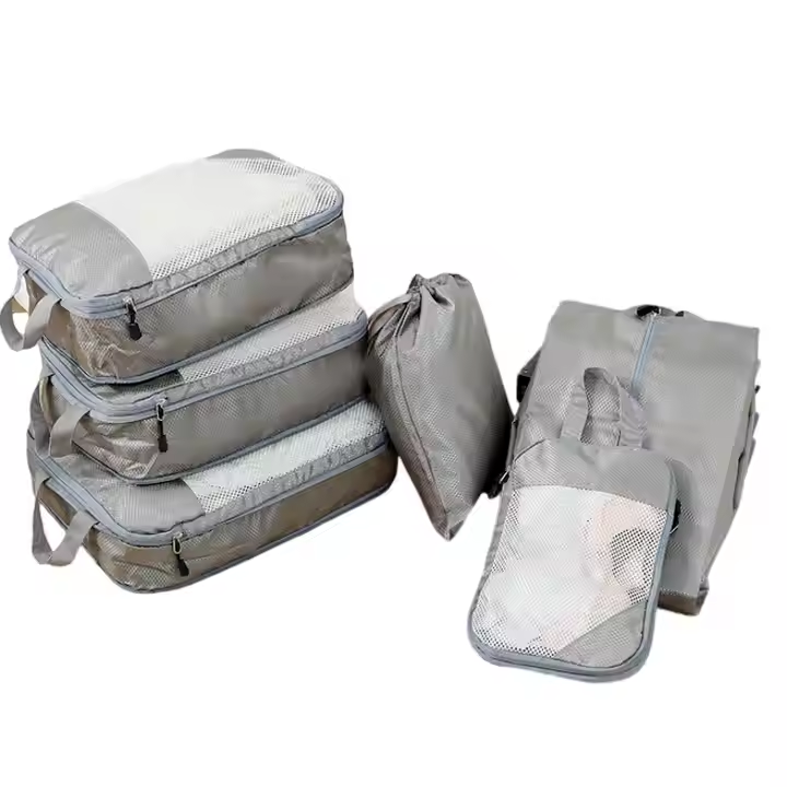 Ensemble de sacs de rangement compressibles - 6 pièces - Tissu polyester pliable carré pour l'organisation des bagages de voyage