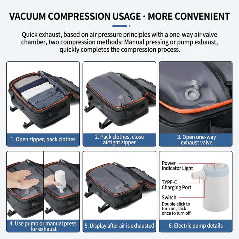 Sac à dos de voyage compressible avec compartiment pour ordinateur portable, léger, idéal pour les vols internationaux et les escapades de week-end
