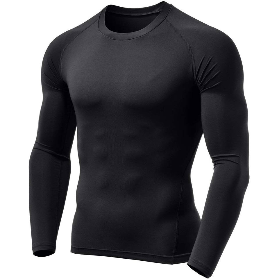 T-shirt de compression pour homme, manches longues, noir, haut de sport, respirant, séchage rapide, décontracté, long t-shirt