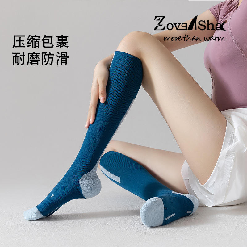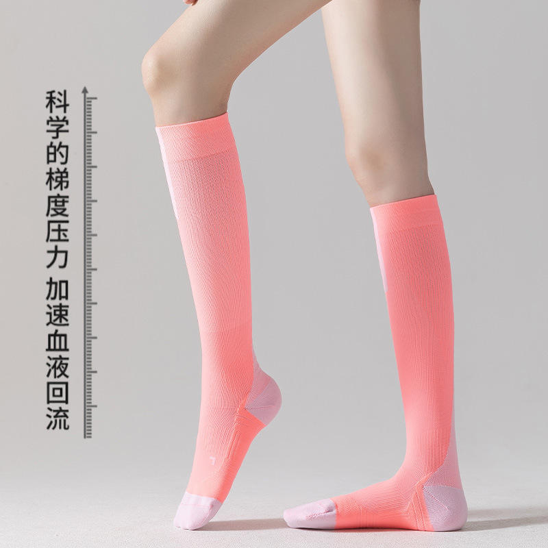 Chaussettes de compression pour femmes, roses, hautes jusqu'aux genoux, pour l'entraînement physique, antidérapantes, pour la récupération musculaire, à manches longues