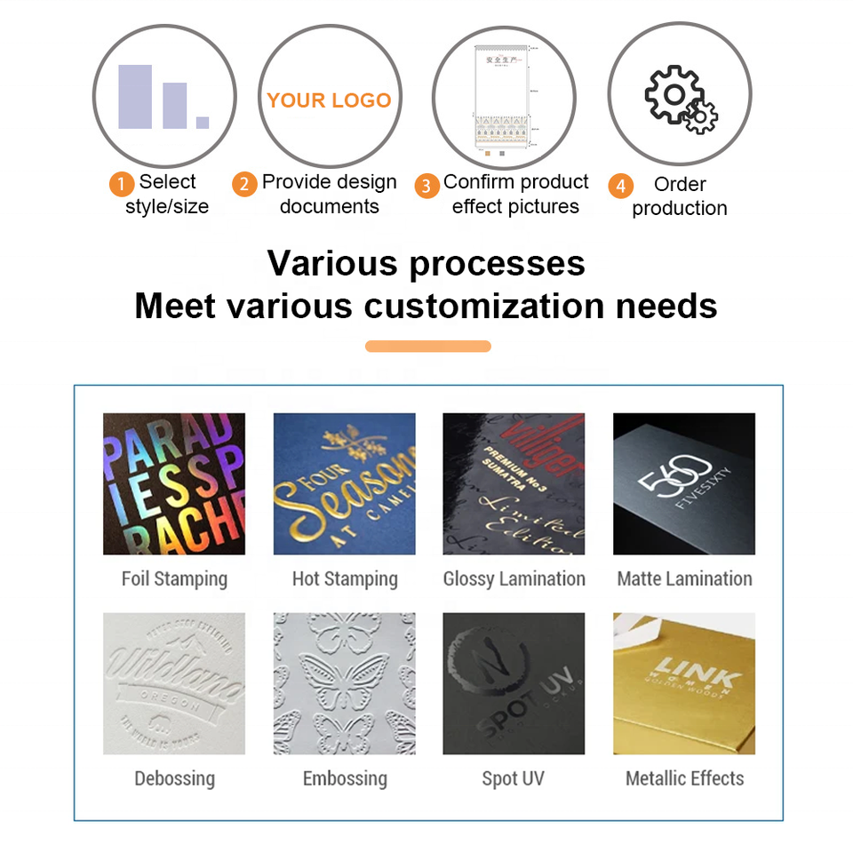Stratification de Matt, Vernissage, Estampillage, Gaufrage, Stratification glacée, Revêtement UV, Disparaition, Feuille d'or, Bronzant, Estampage à froid, Découpes, Gaufrage/Debossing, Impression flexographique, GLITTER, Impression de Gravure, Estampage holographique, Stratifié, Découpe au laser, Membranae tectoria, impression offset, Feuille d'argent, IMPRESSION D'ÉCRAN DE SOIE, Texturé, Impression UV