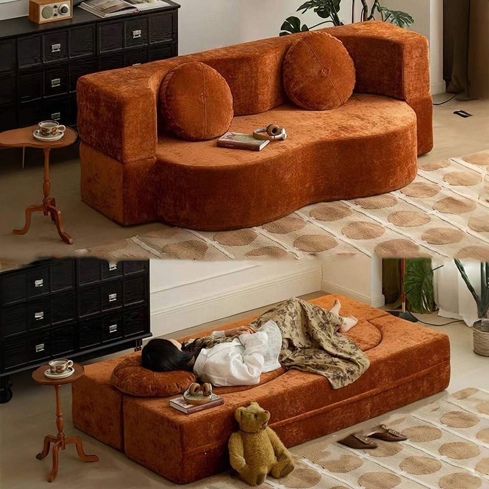 Canapé convertible pour petits appartements, utilisation dans le salon - Tissu en chenille amovible et lavable, design universel, canapé-lit pliable