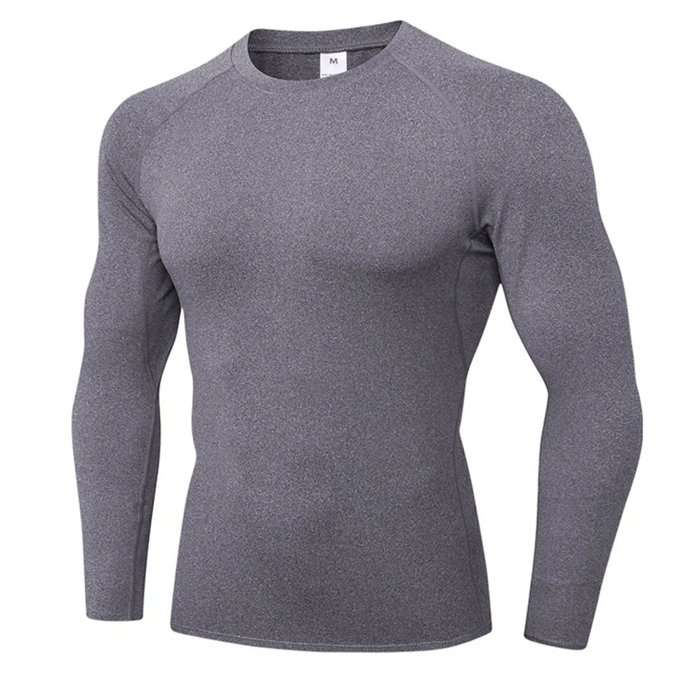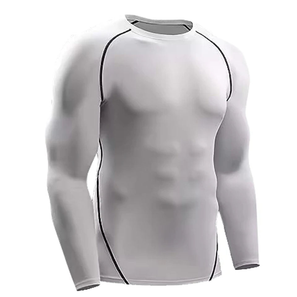 Chemise d'entraînement de Compression hommes à manches longues séchage rapide Gym couche de Base coupe serrée haut d'entraînement athlétique Fitness sport course
