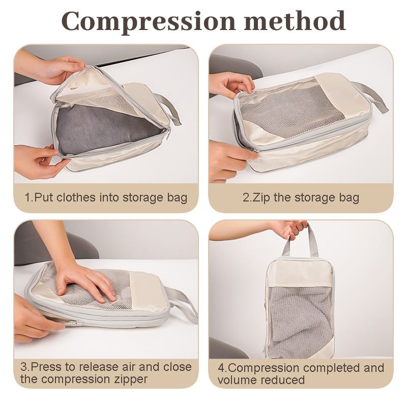 Ensemble de sacs de rangement de voyage à fermeture éclair compressible, cubes d'emballage légers avec organisateur pour le rangement à domicile