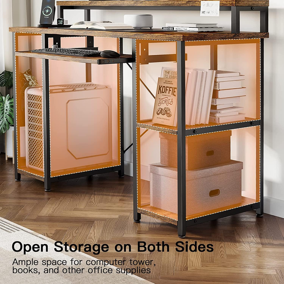 Bureau d'ordinateur avec plateau pour clavier et étagères de rangement, poste de travail pour studio de musique ou bureau à domicile