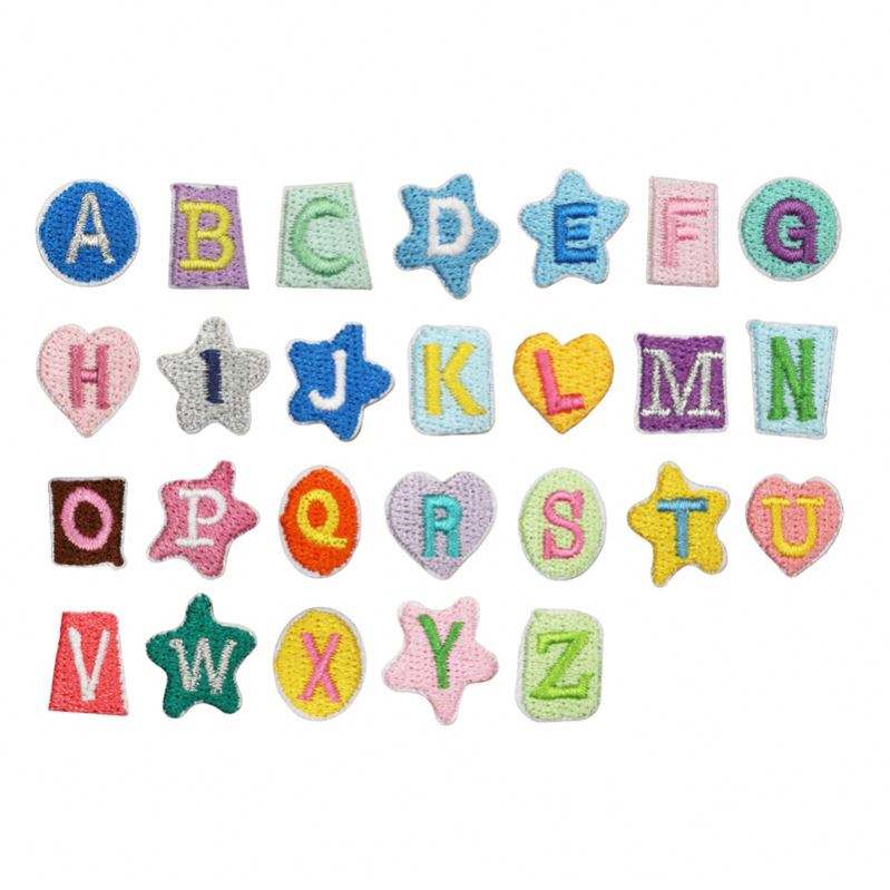 Badge thermocollant brodé à l'ordinateur, mini format, style alphabet de dessin animé, patch lettre anglaise pour vêtements et chapeaux