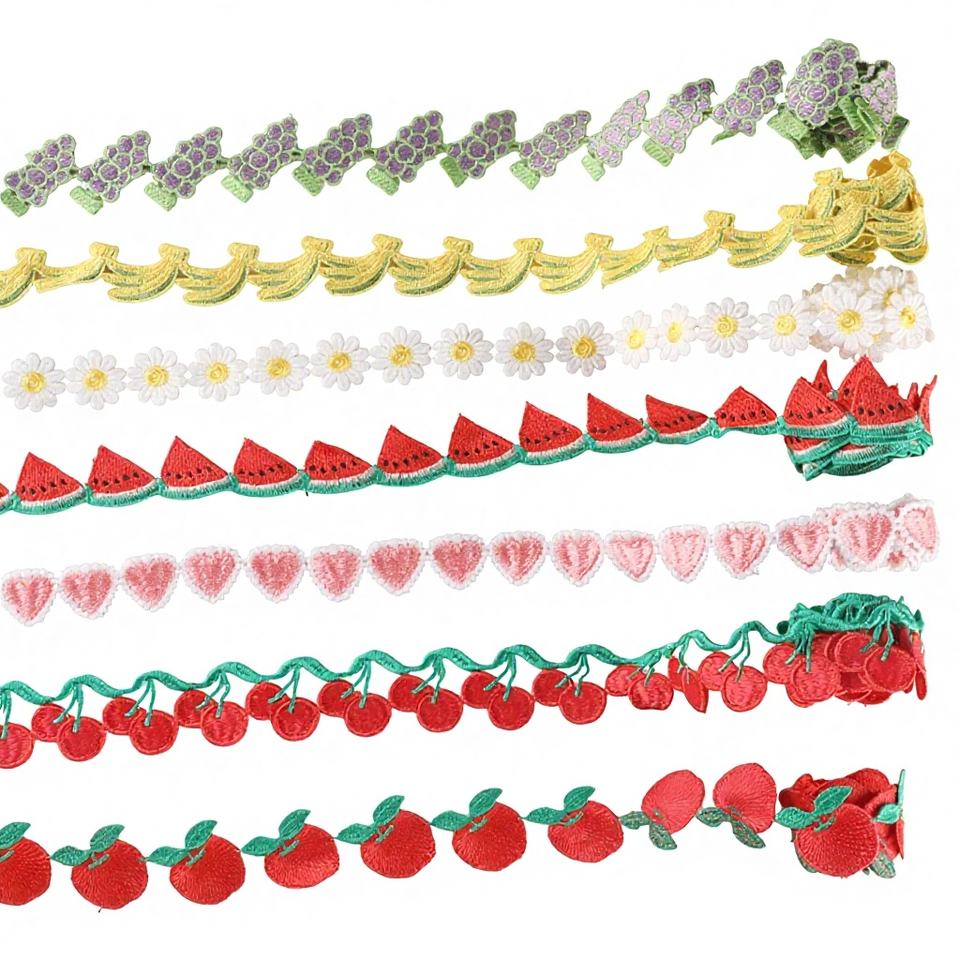 Ruban de broderie soluble dans l'eau pour accessoires de vêtements DIY, motifs dessin animé, fruits, papillons, dentelle, pétales, pour scrapbooking et broderie sur ordinateur