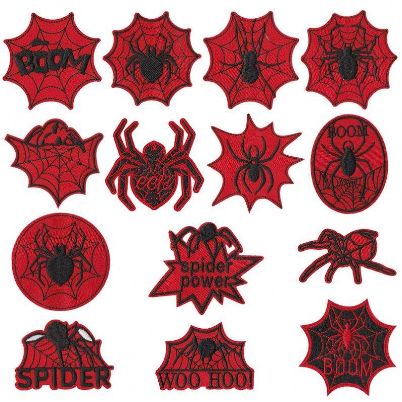 Patch brodé thermocollant pour vêtements, motif araignée rouge de dessin animé, pour broderie informatique