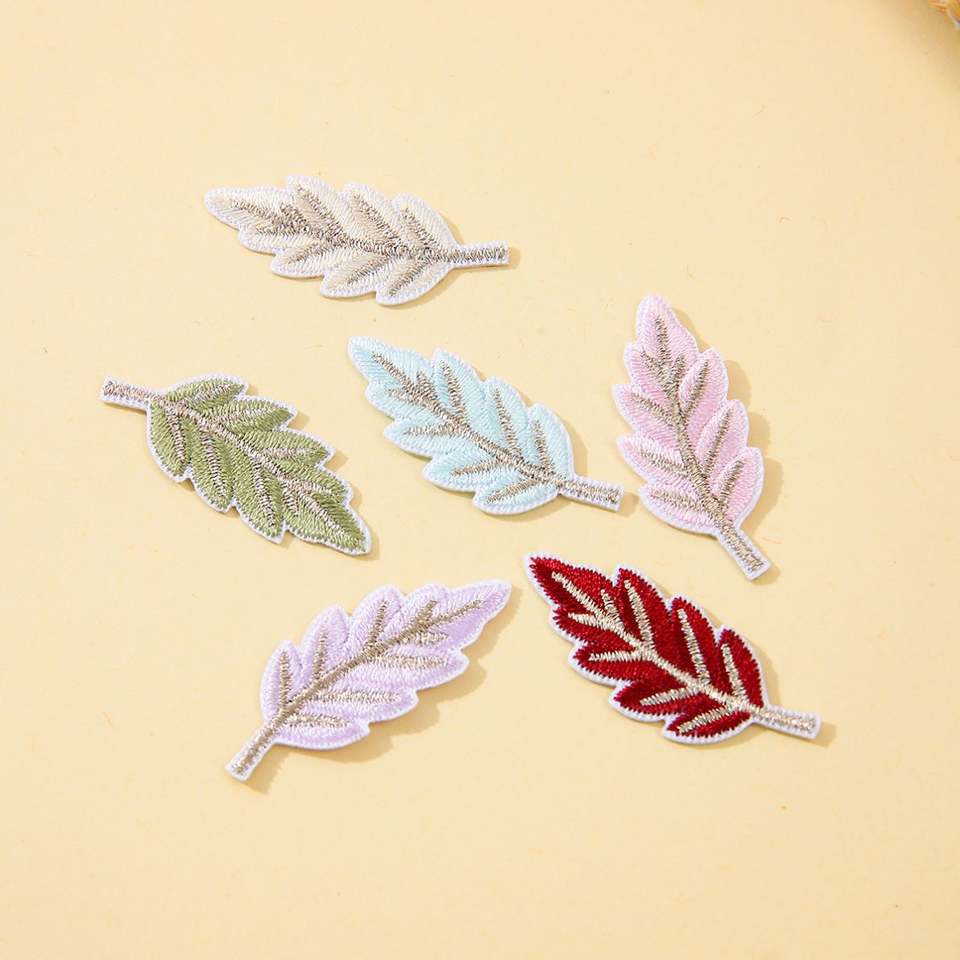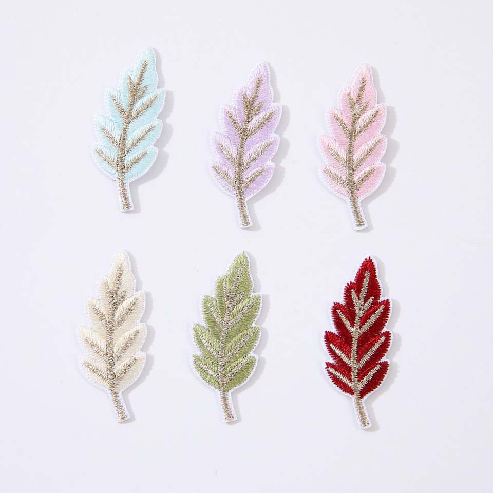 Patch brodé thermocollant en polyester argenté motif feuille fraîche pour sacs, vêtements, chapeaux et chaussures