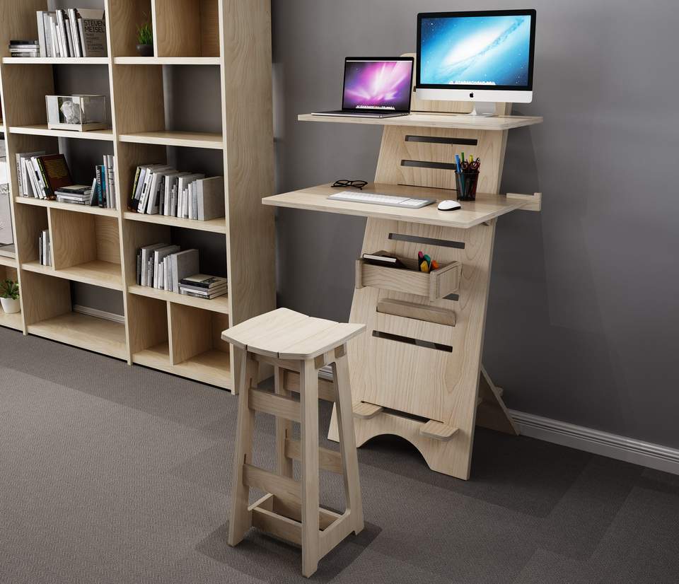 Bureau de travail intelligent en bois réglable en hauteur Wintop, épaisseur de 18 mm, surface peinte en poudre, fonction confort assis pour la maison/le bureau