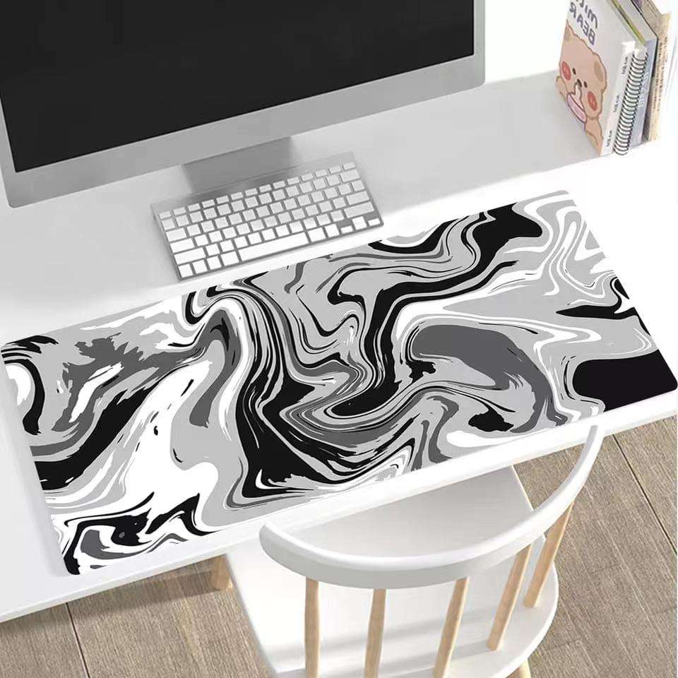 Tapis de souris gamer Strata Liquid 900x400 XXL noir et blanc, grand tapis de souris, tapis de bureau PC, tapis de clavier